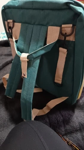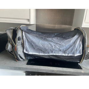 おむつ替えが必要なときも、バッグを広げるだけで瞬時にベビーベッドに早変わりします。これで外出先でも安心して赤ちゃんのお世話ができます。