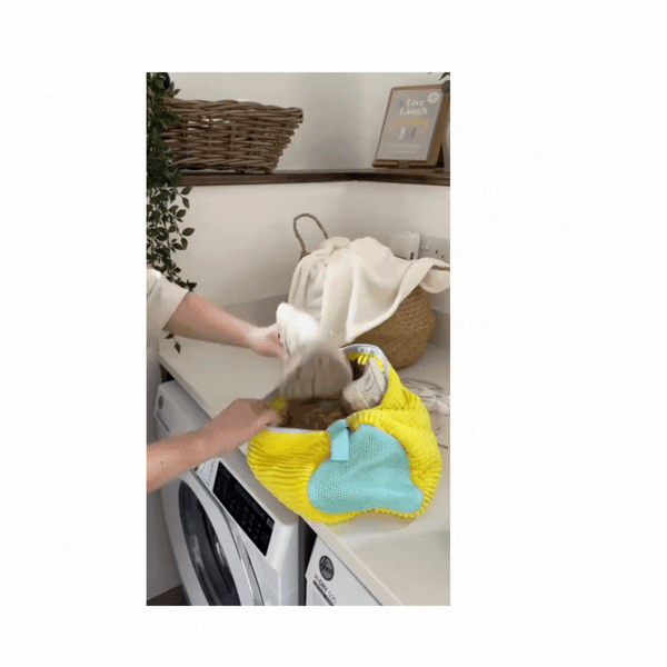 このバッグで靴を洗うと、傷を防ぎつつ清潔に保てます。毎日の洗濯がもっと簡単で心地よいものに。